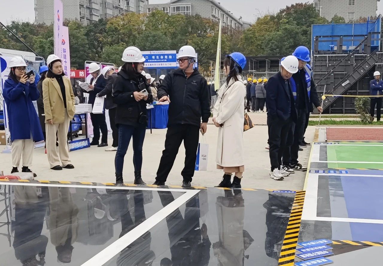 陕十建项目团队详细介绍了项目概况、工程质量、安全生产、环保施工等方面的内容,分享了项目建设的优秀经验和做法,就如何做好现场质量控制、安全生产、扬尘防治等标准化施工建设工作开展现场观摩学习。